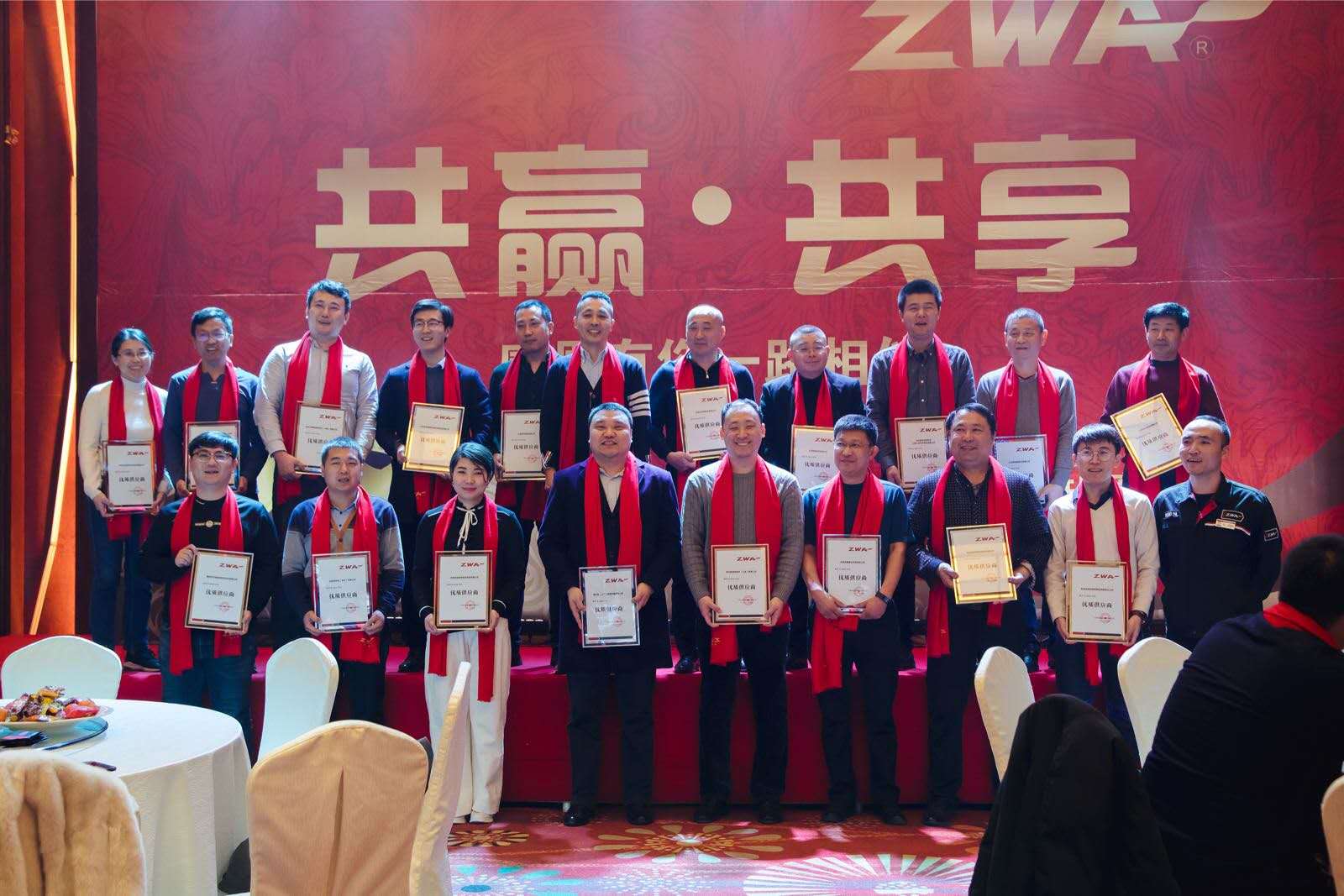 ZWA為供應(yīng)商回贈紅圍巾,寓意鴻運當(dāng)頭